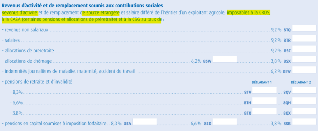 Déclaration de revenus de source étrangère imposables aux contributions sociales