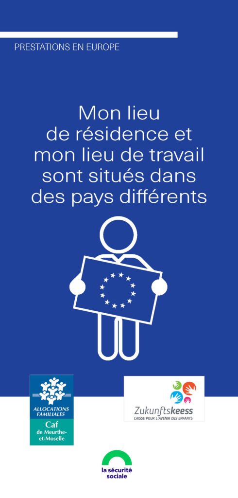 Vous travaillez dans un pays de l’Espace économique européen ou assimilé* et vous résidez dans un autre pays. Vos droits aux prestations familiales résultent de l’application des règlements européens.Document de la Caisse pour l’Avenir des Enfants et de la Caisse d’allocations Familiale.